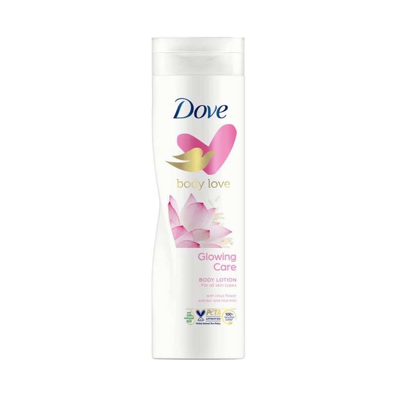 - Dove Body Love Glowing Care Lotus Flower Extract & Rice Milk Body Lotion with 100% natural oils gives your body the care it deserves.
