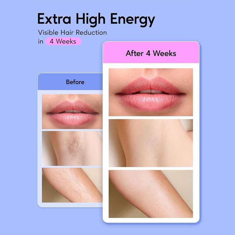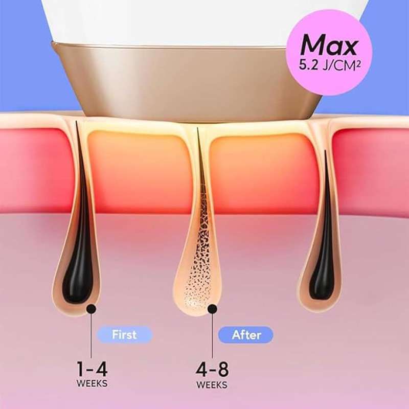 - Effective Laser Hair Removal : Professional IPL hair removal device delivers high level energy. Greater than 510nm wavelength deeply penetrate the hair follicle to break the cycle of hair growth, remove the undesired hair efficiently and safely. Power with every flash, You will see visible result in treatment area after 4 weeks.