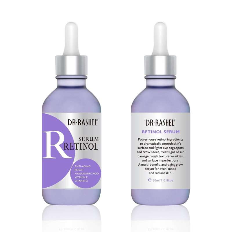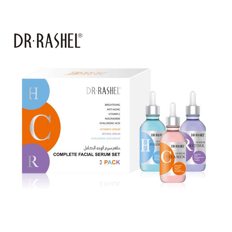 - Dr Rashel Complete Facial Serum Set ( 3 pack of serum ) 1. Vitamin C serum , 2 . Retinol Serum , 3. Hyaluronic Acid Serum ( Comes in 1 pack box ) Size , 30ml / 1.01oz x 3 pack , Brightening , anti aging , Advance Moisture Formul , Retinol Serum Repair age defence , repair formula fight eye bags , spots and crow's feet . Hyaluronic Acid Serum , Deep hydrating enhance moisturizing formula , Hydrates and plumps skin , helps smooth and soft skin. .