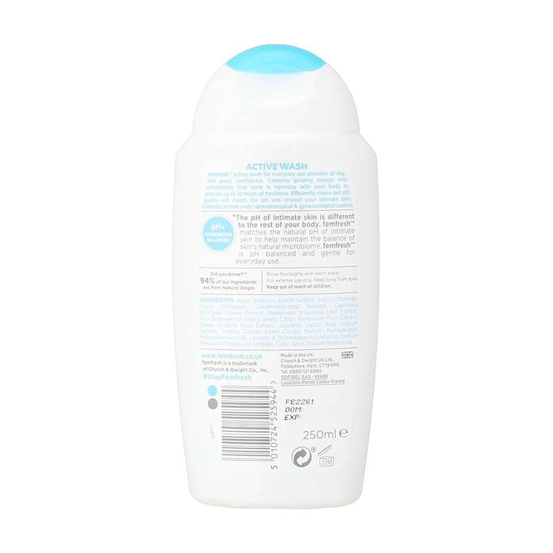 - receive a pack of 1 x 250ml femfresh ultimate care active wash.