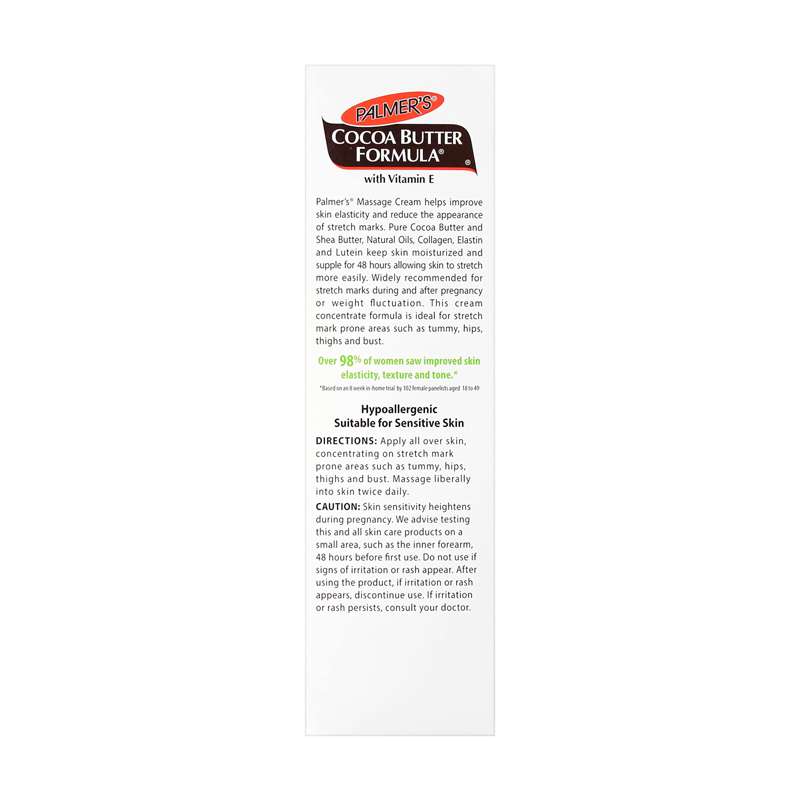 - Palmer's Cocoa Butter Formula Massage Cream helps visibly improve skin elasticity and reduce the appearance of stretch marks.