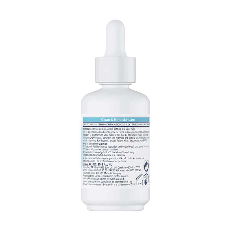 - Simple 3% Hyaluronic Acid Booster Serum gives instant visible results. 95% natural ingredients calm dry and sensitive skin, keeping it moisturised and plump from within.